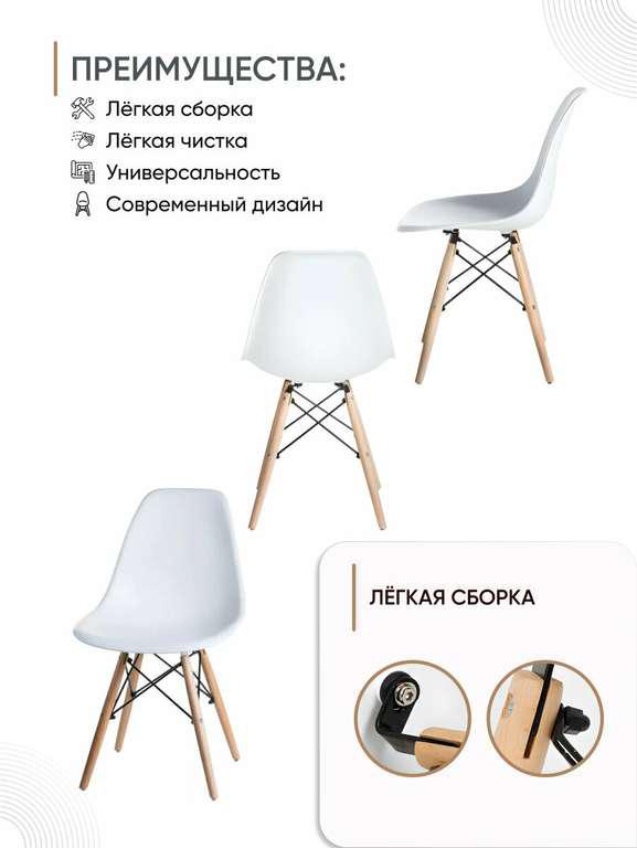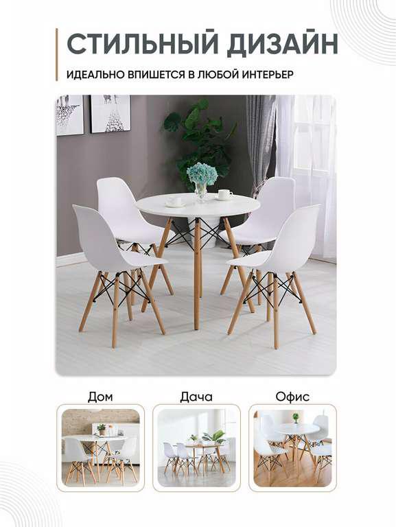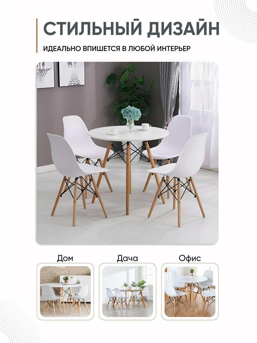 Комплект из 4 белых стульев со спинкой GEMLUX GL-FP-235WT/4: цена с картой Альфа Банка, может отличаться от города сиденье из полипропилена, ножки из массива бука, металлический каркас максимальная нагрузка – до 100 кг Обычная цена – 4760₽.